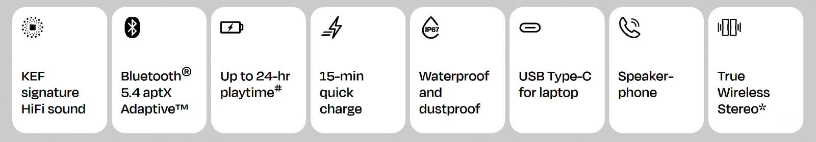 KEF Muo поддерживает стереопару, многокомнатное подключение через Auracast и прямое соединение с ноутбуком через USB-C. Удобные функции, такие как совместимость с Google Fast Pair и Microsoft Swift Pair, а также встроенный микрофон для голосовых вызовов делают колонку универсальным выбором для современных пользователей. Вес устройства составляет всего 740 граммов, а корпус может выдержать температурные перепады от -20°C до +45°C.