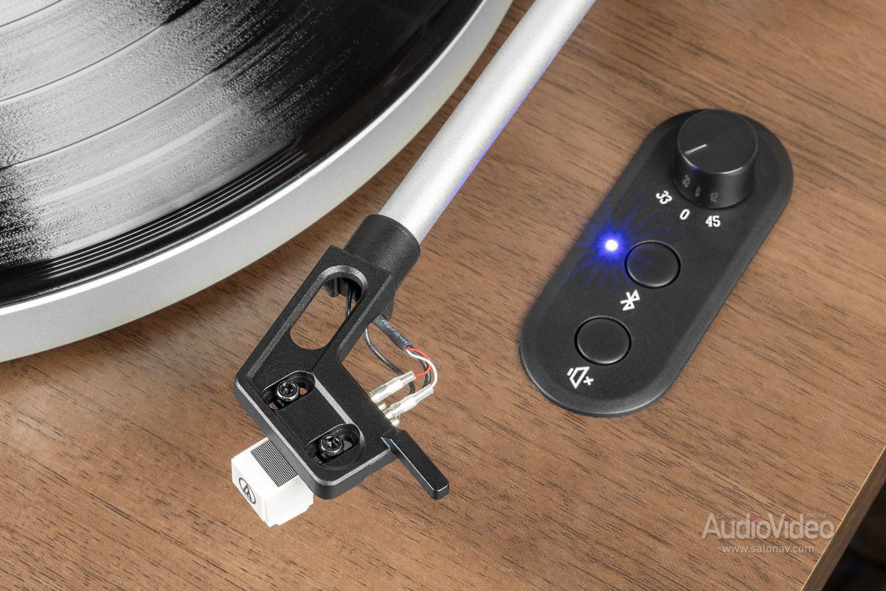 Проигрыватель оснащён встроенным Bluetooth модулем версии 5.3, который даёт возможность слушать музыку с пластинок на мобильных устройствах. Включается он на панели управления, там же находится переключатель скоростей и кнопка MUTE, сбрасывающая громкость при беспроводной трансляции.